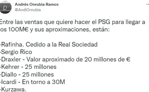 En principio, según informó el medio francés, víaAndrés Onrubia Ramos, los habituales titulares no estarían en peligro de ser negociados, pero ya circula una lista de futbolistas que serían los apuntados para llegar a ese centenar de millones para acomodar las cuentas.