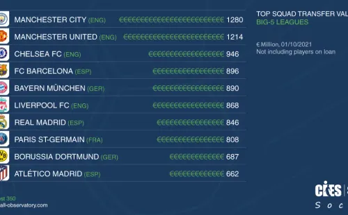 Con un valor de 808 millones de euros, Paris Saint Germain está según el Observatorio CIES, por debajo de otros 7 gigantes en el fútbol europeo. Con Manchester City liderando la tabla con un plantel al que le dan un dan un precio cercano a los 1280 millones de euros, los galos se encuentran más cerca de dejar el Top 10 que de comandar los grupos de jugadores más caros del planeta.