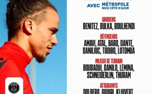 Marcin Bulka; Jordan Lotomba, Jean-Clair Todibo, Dante, Jordan Amavi; Hichem Boudaoui, Khephren Thuram-Ulien, Morgan Schneiderlin, Justin Kluivert; Kasper Dolberg y Amine Gouiri. DT: Christophe Galtier.
