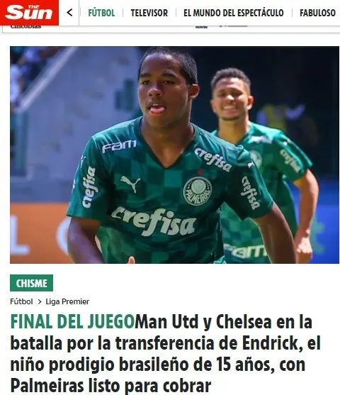 The Sun asegura que Chelsea y Manchester United llegarán hoy a Brasil con ofertas por dichas sumas, MARCA confirma a Real Madrid siguiéndole desde hace un año con Juni Calafat a la cabeza y Sport hace lo propio con Barcelona. Campeón del Mundialito sub-17 en aquella polémica final con Argentina, Endrick se prepara para dejar un récord de traspaso en Conmebol.