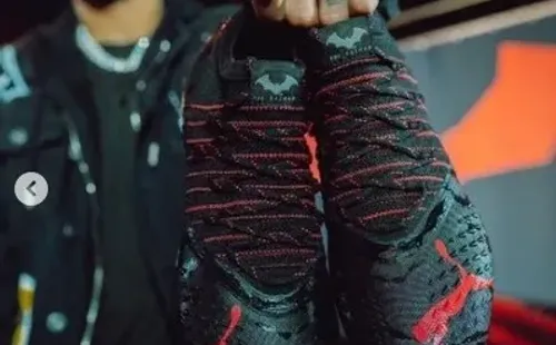 A través de sus redes sociales se conoció una fotografía de él luciendo el calzado color negro con vivos rojos, cordones de esos dos colores, y en la parte superior con el logo del enmascarado de Ciudad Gótica, que estrenará película el próximo 4 de marzo en todas las salas del mundo.