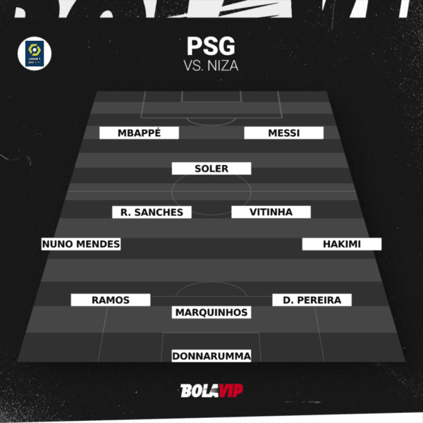 El once titular de PSG que Galtier pone en el campo del Allianz Riviera tendría a Gianluigi Donnarumma; Danilo Pereira, Marquinhos, Sergio Ramos; Achraf Hakimi, Vitinha, Renato Sanches, Nuno Mendes; Carlos Soler; Lionel Messi y KylianMbappé.