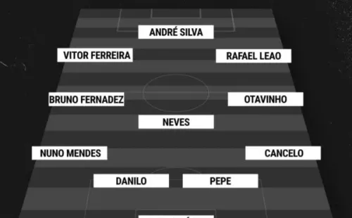 Rui Patrício; Joao Cancelo, Pepe, Danilo, Nuno Mendes; Ruben Neves, Otavinho, Bruno Fernandes; Rafael Leao, André Silva, Vitor Ferreira.