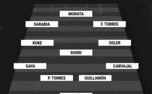 En el oto bando, Luis Enrique responderá con Unai Simón; DaniCarvajal, Hugo Guillamón, Pau Torres,José Luis Gayà;Koke, Rodri, Carlos Soler; Ferran Torres,Álvaro Morata,Pablo Sarabia.