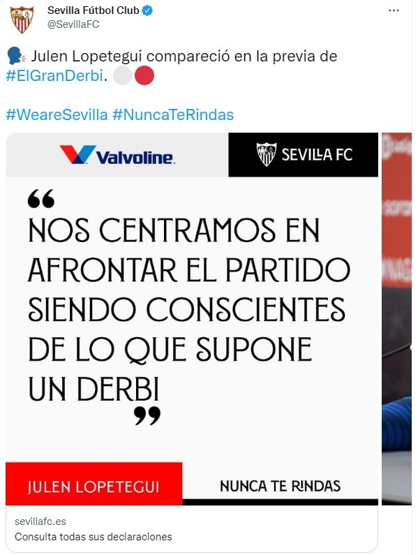 El partido se disputará HOY,domingo 27 de febrero, desde elEstadio Ramón Sánchez Pizjuán,además de que contará con la transmisiónEN VIVOyEN DIRECTOporDirecTV Sportshacia Sudamérica(excepto Brasil, Bolivia y Paraguay).