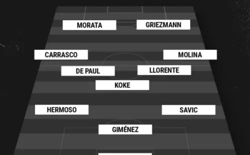 Oblak; Savic, Giménez, Hermoso; Molina, Llorente, Koke, de Paul, Carrasco; Griezmann, Morata.