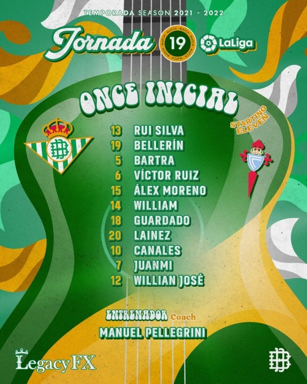 Los “Béticos” pretenden reponerse luego de haber caído anteAthletic Club por 3-2 que les cortó la racha de cuatro victorias en fila que llevaban, lo que no impide resaltar su gran campeonato. El elenco dirigido por el chileno Manuel Pellegrini, que además de Guardado y Lainez también cuenta entre sus filas con los argentinosGermán Pezzella y Guido Rodríguez, se ubican en la tercera posición, con 33 unidades, a 13 del puntero Real Madrid.
