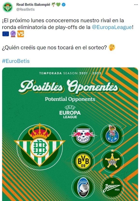 Después de perder 3-2 con Celtic por Europa League y condenándolo a los 16vos del certamen al enfrentar un rival que llega de la Champions, los “Béticos” intentarán acomodarse en el campeonato local. Tres son los triunfos que lleva en fila el equipo siendo el más reciente ante Barcelona por 1-0. Quienes poseen a los argentinosGermán Pezzella yGuido Rodríguez además del chileno Claudio Bravo son liderados por el “Ingeniero” trasandinoManuel Pellegrini además de ir terceros con 30 unidades, a nueve del puntero Real Madrid.