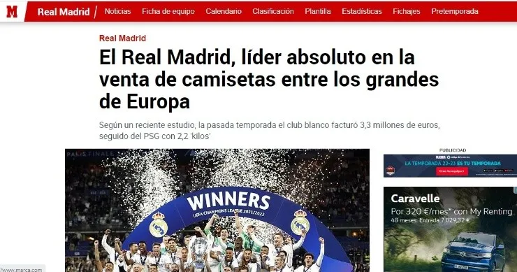 En la punta aparece un Real Madrid que aumentó la demanda de su camiseta en un 400% con la obtención de la UEFA Champions League y que cierra la temporada con ventas que superan los 3.3 millones de euros. ¿Barcelona? Séptimo en el ranking con una facturación que llega a los 700.00 euros. El conjunto Merengue, Rey de Europa en cuanto a venta de indumentarias se refiere.