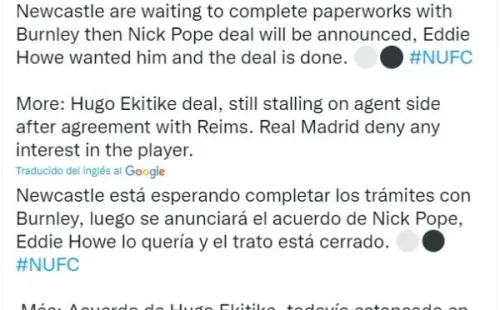Y es que el propio Fabrizio Romano ha confirmado que de momento no hay interés de los Merengues en el tanque de 1.90 metros del Reims. El italiano aseguró que eso sí, desde St. James Park son desde donde más pujan por la joya de la Ligue 1 con ofertas cercanas a los 40 millones de euros: “Newcastle: Acuerdo de Hugo Ekitike, todavía estancado en el lado del agente después del acuerdo con Reims. El Real Madrid niega cualquier interés por el jugador”.