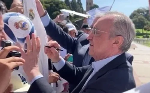 Florentino Pérez se disponía a saludar a los aficionados presentes en la UCLA y firmar algunos autógrafos, cuando las cámaras de MARCA captaron el momento de la jornada. A base de peticiones a su presidente, varios hinchas dejaron en claro su opinión sobre la trama CR7: “¡Presi, bendiciones, por favor traiga de nuevo a Cristiano!…¡Haga que no se vaya al Atleti!”.