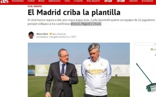 AS punta igualmente que en la dirección deportiva del club empiezan a preocuparse por un mercado de fichajes donde solo ha habido novedades en las ventas y no en los refuerzos. Dicho esto y sabiendo que Ancelotti desea contar con solo 22 futbolistas, varios jugadores viven una durísima competencia para evitar una venta que termine con su etapa en la casa blanca.
