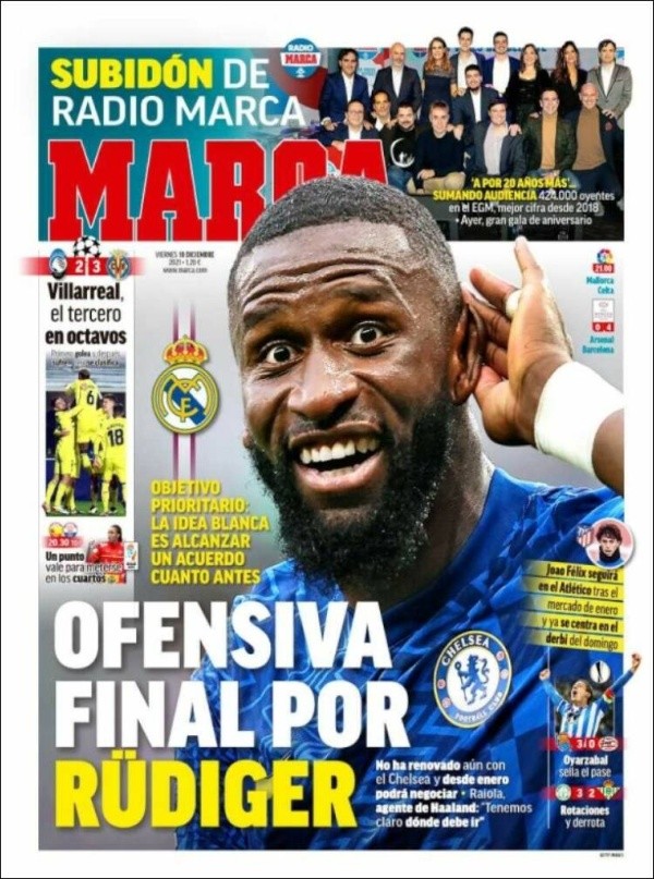 El germano ha sido el gran protagonista de la portada de MARCA para este viernes, donde el medio asegura que Real Madrid se prepara un asalto final por el zaguero más codiciado de Europa en este momento. Los grandes del viejo continente siguen la actualidad de un Rudiger que en la capital española quieren que siga los pasos de David Alaba.