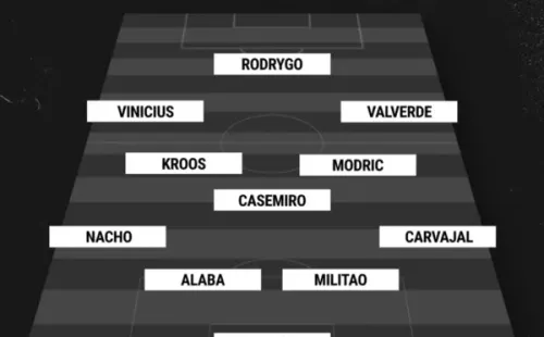 Thibaut Courtois; Nacho Fernández, David Alaba, Éder Militão, Dani Carvajal; Luka Modric, Casemiro, Toni Kroos; Vinícius, Rodrygo y Federico Valverde.