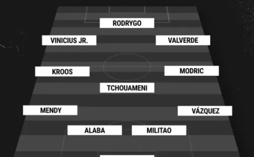 Thibaut Courtois; Lucas Vázquez, Eder Militao, David Alaba, Ferland Mendy; Luka Modric, Toni Kroos, Aurélien Tchouaméni; Federico Valverde, Vinicius y Rodrygo esel once elegido por Carlo Ancelotti de cara a terminar la primera parte de la temporada con una victoria que permita a los Merengues ponerse cerca de un Barcelona que se encontrará solo en la punta como mínimo hasta el 2023.