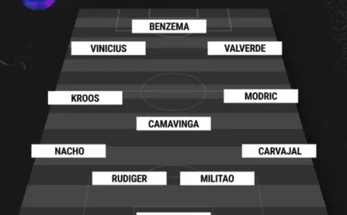 Thibaut Courtois; Dani Carvajal, Eder Militao, Antonio Rudiger, Nacho; Luka Modric, Eduardo Camavinga, Toni Kroos; Federico Valverde, Karim Benzema y Vinicius Junior sonlos once de un Real Madrid que pese a la diferencia en el marcador, no especularía de cara a un encuentro que será de máxima exigencia.