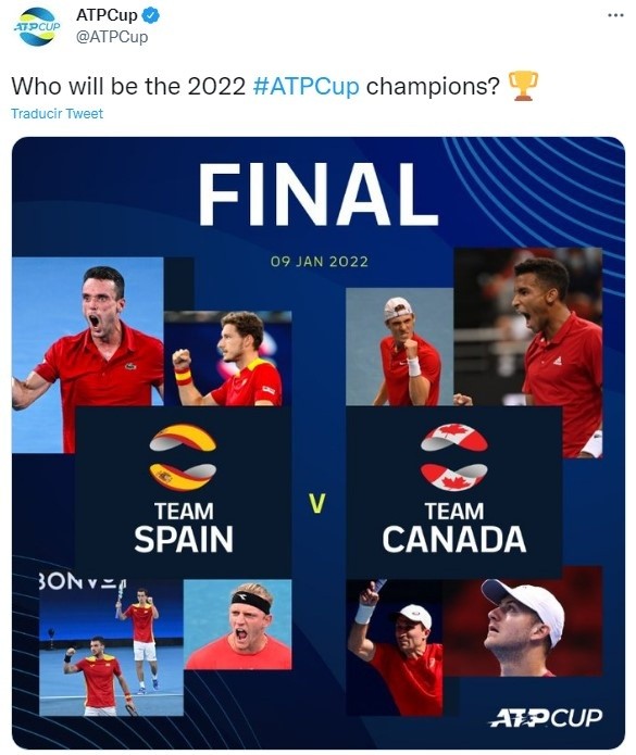 Después de una semana intensa de competición, tenemos a los dos integrantes de la granFINALpor laATP Cup, la cual todo se debatirá entreEspañay Canadá. Uno solo se consagrará por primera vez en el certamen.Los representantes para el segundoserán tanto Roberto Bautista Agut(19) comoFélix Auger-Alliasime (11) con sedeen elKen Rosewall Arena de Sídney. Dicho juego tendrá lugar estedomingo 9 de enero, con transmisión EN VIVO y ONLINE para Latinoamérica a través de la pantalla de ESPN 2 y la plataforma de streaming, Star+.