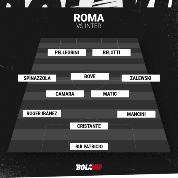 Rui Patricio; Mancini, Cristante, Roger Ibáñez; Zalewski, Camara, Matic, Bove, Spinazzola; Pellegrini y Belotti.