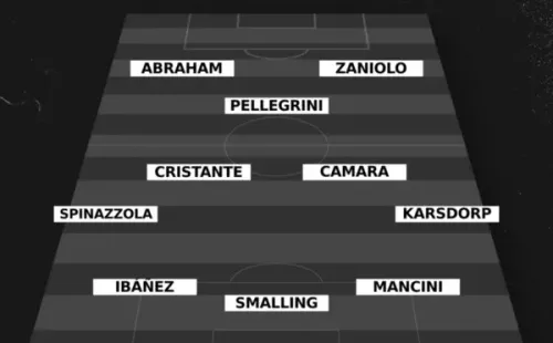 Rui Patricio; Gianluca Mancini, Chris Smalling, Roger Ibáñez; Rick Karsdorp, Mady Camara, Bryan Cristante, Leonardo Spinazzola; Lorenzo Pellegrini; Nicolo Zaniolo, Tammy Abraham.