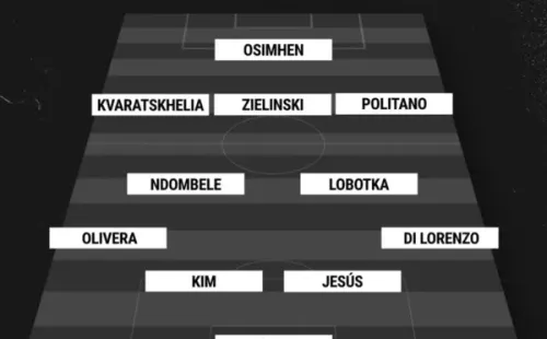 Alex Meret; Giovanni Di Lorenzo, Juan Jesús, Kim Min-Jae, Mathías;Stanislav Lobotka, Tanguy NDombele;Matteo Politano, Piotr Zielinski, Kvicha Kvaratskhelia; Victor Osimhen.
