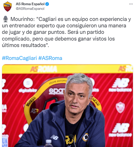 La Loba pretende recuperarse debido a que acumula tres presentaciones sin ganar, con un empate y las dos recientes derrotas frente a Milan (3-1) y Juventus (4-3). En este escenario, el elenco dirigido por el portugués José Mourinho, que cuenta en el plantel con el uruguayo Matías Viña, se encuentra en la séptima posición de la tabla, con 32 unidades y a tres de Lazio, que ingresaría a la próxima edición de la UEFA Europa Conference League.
