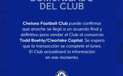 En la misma línea, el club confirmó que la transferencia es inminente luego de lo que fue la aprobación de la Premier League y el Gobierno Británico: “Chelsea Football Club puede confirmar que anoche se llegó a un acuerdo final y definitivo para vender el Club al consorcio Todd Boehly/Clearlake Capital. Se espera que la transacción se complete este lunes. El Club actualizará la información en ese momento“.
