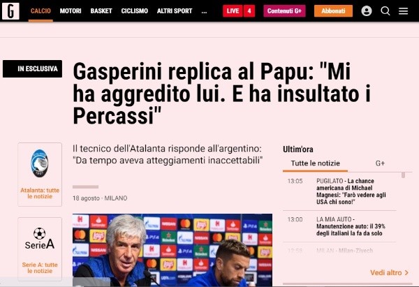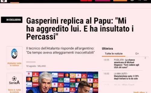 La Gazzetta dello Sport habló con el entrenador de Atalanta, quien contestó a las declaraciones del Papu manifestando una versión que se contradice con lo dicho por el argentino. Tras 5 años, decenas de goles y asistencias, la relación entre quienes pusieron al club de Bérgamo en los primeros planos está cada vez más lejos de solucionarse.