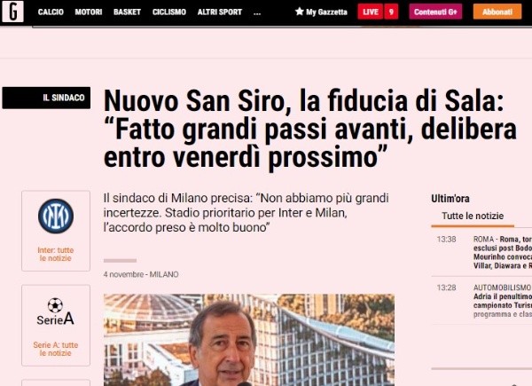 “Considero muy bueno el acuerdo hecho y por lo tanto no tengo ninguna duda, pero hay que explicarle a la ciudadanía qué será de San Siro”, confirmaba el político en una nota recogida en la Gazzetta dello Sport donde se marca que el estadio será derrumbado en 2024. Si no hay grandes cambios, desde el viernes empezarán a presentarse los proyectos para que los milaneses puedan despedirse de una cancha que ha sido la madre del fútbol de la ciudad.