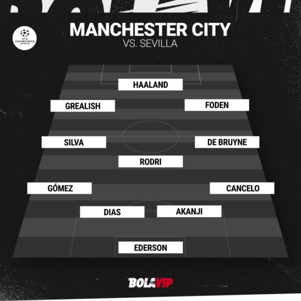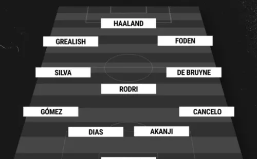 Ederson; Cancelo, Akanji, Dias, Segio Gómez; De Bruyne, Rodri, Silva; Foden, Haaland, Grealish.