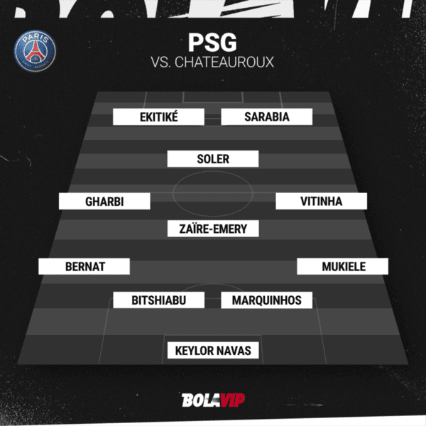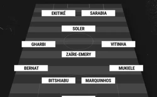Con esta gran cantidad de ausencias, PSG pone una alineación titular con los siguientes protagonistas: Keylor Navas; Nordi Mukiele, Marquinhos, El Chadaille Bitshiabu, Juan Bernat; Vitinha, Warren Zaïre-Emery, Ismaël Gharbi; Carlos Soler; Pablo Sarabia y HugoEkitike.