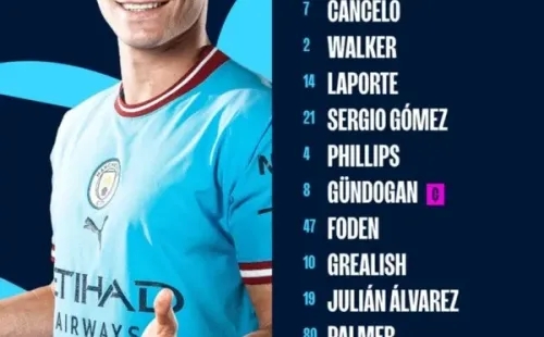Ortega; Cancelo, Walker, Laporte, Gómez; Phillips, Gündogan, Foden; Grealish, Palmer, Álvarez.
