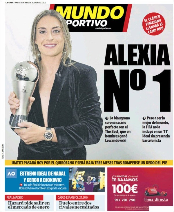 “Lewandowski por delante de Messi, Alexia es The Best, Alexia número 1, Son The Best y Messi detrás de Lewandowski, no hay discusión”, fueron las portadas con las que amanecieron en sus webs medios como MARCA, AS, Mundo Deportivo o Bild Sport en Alemania. Los crack de Bayern Múnich y Barcelona, los mejores de todo el 2021.