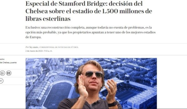 Correcto, desde The Telegraph desvelan las intenciones del norteamericano por remodelar la casa de un Chelsea que tiene el feudo con menor capacidad de toda la élite del fútbol inglés. Las apenas 42.000 butacas de The Bridge y la localización del estadio en un barrio donde extenderse es cada vez más difícil, obligan a pensar en nuevos proyectos que apuntan a comenzar desde este mismo verano.