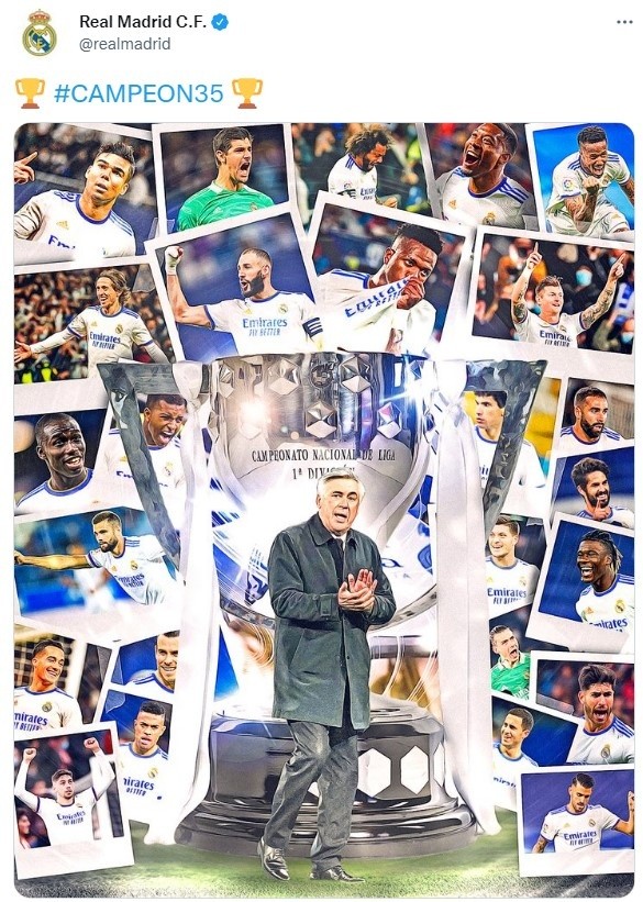 Después de lo que fue el triunfo contra Espanyol, elReal Madridacaba de conquistar una nuevaLiga de Españatras solamente una temporada de espera. El “Merengue” adelantó su celebración con cuatro jornadas de anticipación y sumó la segunda estrella de la presente campaña, ya que hay que agregar la Supercopa obtenida a principios de este año.