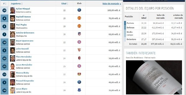 Por su parte y pese a la irregularidad mostrada después de la Copa del Mundo, Francia cuenta con uno de los planteles más caros del planeta. Valorado en 977 millones de euros por el portal líder en información de fichajes, Le Bleus dominan el planeta a la hora de juntar a los más cotizados. Kylian Mbappé por supuesto, lidera la tabla con un precio de 160 kilos.