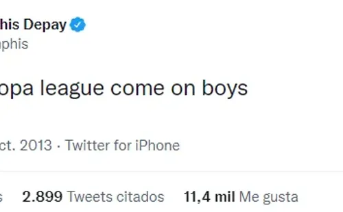 Aquel día, en el que publicó ese tweet, Depay vestía la camiseta de PSV Eindhoven en la segunda jornada de la Europa League ante el club ucranianoChornomorets Odesa. Fue victoria para los neerlandeses por 2-0 con gol del actual futbolista de Barcelona. Sin embargo, no conseguirían la clasificación más tarde.