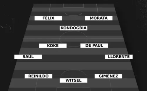Por el otro lado, se espera que el Cholo Simeone responda con JanOblak; José María Giménez, Axel Witsel, Reinildo; Marcos Llorente, Rodrigo De Paul, Koke, Saúl Ñíguez; Geoffrey Kondogbia; Álvaro Morata, Joao Félix.