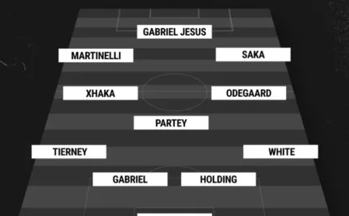 Ramsdale; Ben White, Holding, Gabriel Magalhaes, Tierney; Odegaard, Partey, Xhaka; Saka, Jesus, Martinelli.