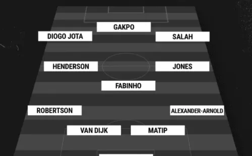Alisson; Alexander-Arnold, Matip, Van Dijk, Robertson; Jones, Fabinho, Henderson; Salah, Gakpo, Diogo Jota.
