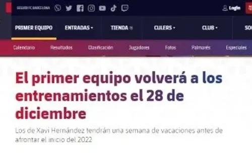 “El primer equipo tendrá unos días de vacaciones de Navidad tras el duelo de este martes ante el Sevilla. Xavi Hernández ha decidido dar fiesta a sus jugadores hasta el martes 28 de diciembre, cuando vuelvan a los entrenamientos en la Ciudad Deportiva, a partir de las 18 horas.