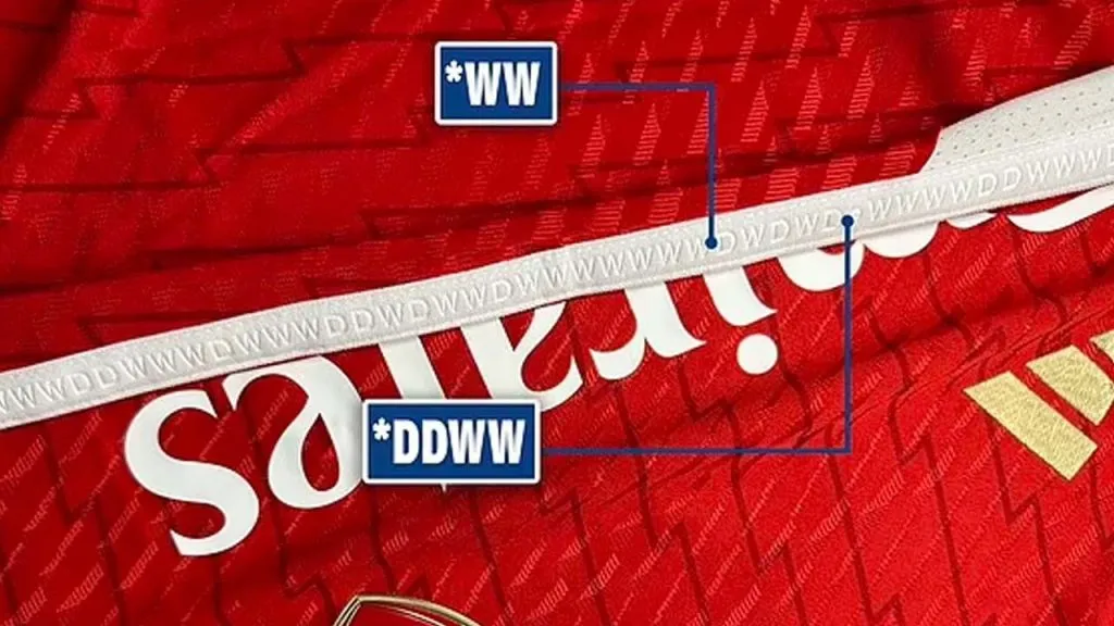 En inglés se utilizan las siglas W (Win/Victoria), D (Draw/Empate) y L (Loss/Derrota) para reconocer los resultados de los partidos, y la nueva camiseta del Arsenal debía tener los 38 resultados de aquella temporada. Sin embargo, hay más de un error en el ordenamiento de las letras y también en la cantidad.