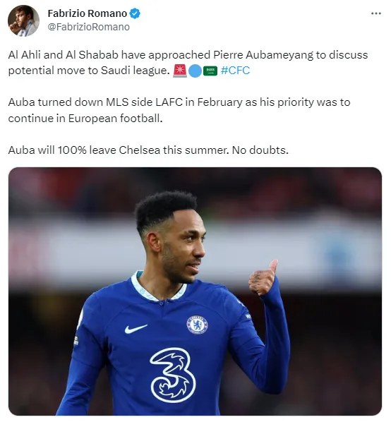 Se sabe que Chelsea pondrá a gran parte de su plantel en oferta este verano y los saudíes no querrán perderse de las rebajas. Fabrizio Romano, el periodista especializado en mercado, explicó que Pierre-Emerick Aubameyang ya recibió ofertas desde aquellas tierras.