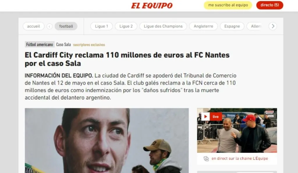La historia de la última batalla entre dichos equipos comienza cuando hace solo unas horas Cardiff City alegaba que Nantes debía abonarle una cantidad cercana a los 110 millones de euros en ‘concepto de la pérdida de ingresos sufridos’ tras no poder contar con Emiliano Sala y con sus goles para evitar el descenso del club a la segunda división inglesa en dicha temporada: “Sus tantos nos habrían salvado del descenso a Championship, lo que supuso una pérdida de 100 millones de euros para el club”.