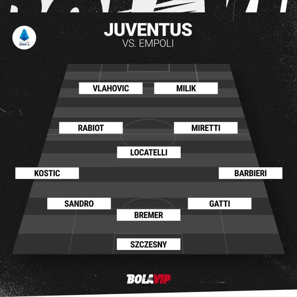 Juventus responderá con Wojciech Szczesny; Federico Gatti, Gleison Bremer, Alex Sandro; Tommaso Barbieri, Fabio Miretti, Manuel Locatelli, Adrien Rabiot, Filip Kostic; Arkadiusz Milik, Dusan Vlahovic.