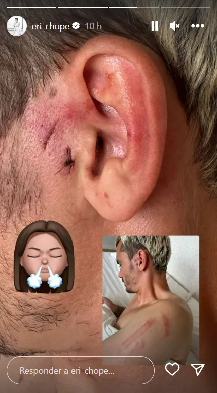 Ahora, luego del partido, ha salido su esposa, Erika Choperena a mostrar el estado del futbolista. La mujer de Griezmann publicó una historia en su cuenta de Instagram en la que se ve la sutura cerca de la oreja del delantero y las marcas que quedaron en su hombro.