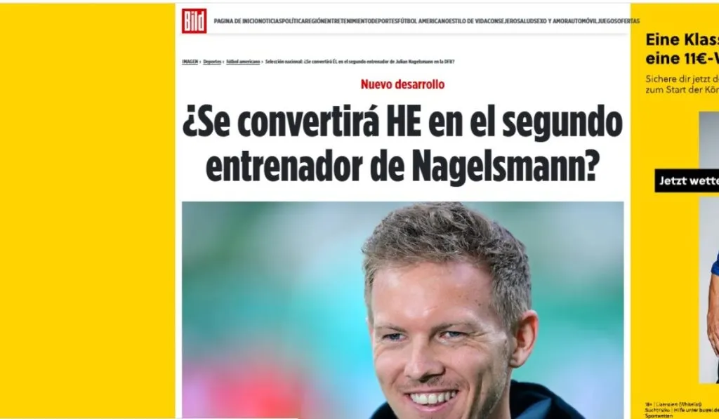 “Exclusiva: Julian Nagelsmann será el seleccionador alemán para la Eurocopa 2024 en Alemania”, información del periodista de BILD Christian Falk tras el acuerdo alcanzado entre ese triangulo Bayern-DFB-Nagelsmann que parecía imposible horas atrás. Para llegar a Die Mannschaft, el joven DT renunciará a una millonada pactada con el Allianz Arena.