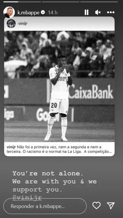 En cuanto a sus compañeros de profesión, ha tenido eco el mensaje de Kylian Mbappé en solidaridad con Vinícius. “No estás solo. Estamos contigo y te apoyamos” dijo el francés desde su cuenta de Instagram.