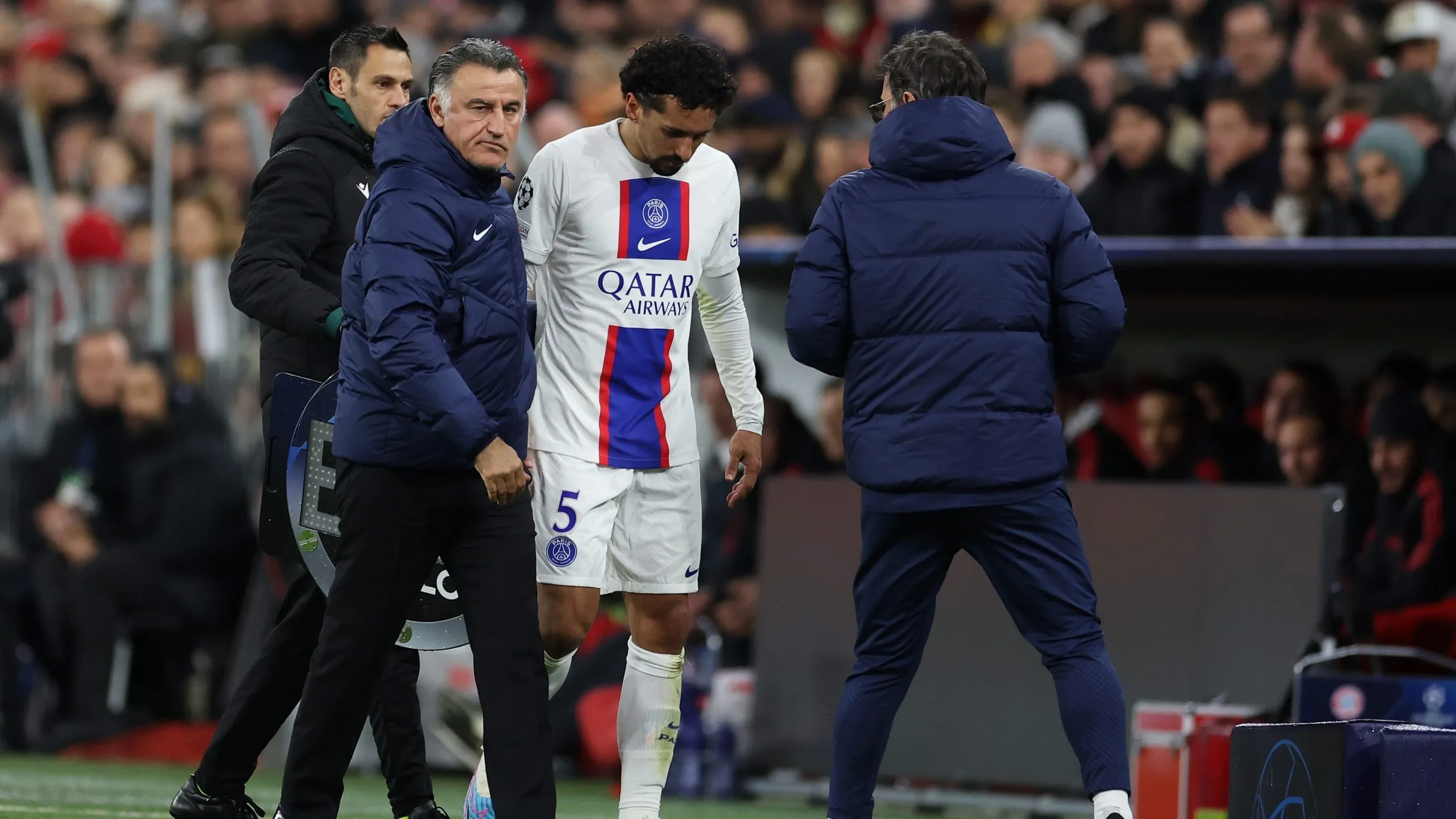© Getty ImagesMUNICH, GERMANY - MARCH 08: Christophe Galtier, Manager of Paris Saint-Germain, looks on prior to the UEFA Champions League round of 16 leg two match between FC Bayern München and Paris Saint-Germain at Allianz Arena on March 08, 2023 in Munich, Germany. (Photo by Alex Grimm/Getty Images)