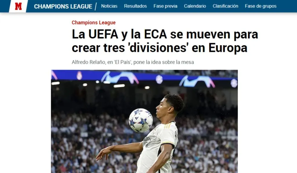 “En la cabeza de muchos figura una competición con tres divisiones. En las últimas reuniones de la ECA (última semana de septiembre) con dirigentes de la UEFA se habló de tres divisiones de 18: Superliga, Liga Europa y Liga Aspirante. Entre la segunda y la tercera habría cuatro ascensos-descensos”, empieza MARCA sobre un nuevo certamen europeo donde eso sí, no se aclara si hay o no plazas fijas. Sí, hablamos de un modelo similar al propuesto por los 12 clubes ‘rebeldes’ dos años atrás.