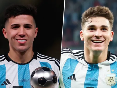 Enzo Fernández se tomó para el chiste la imagen en la que se lo ve a Julián Álvarez ostentando todos sus logros de la temporada.
